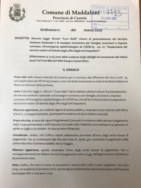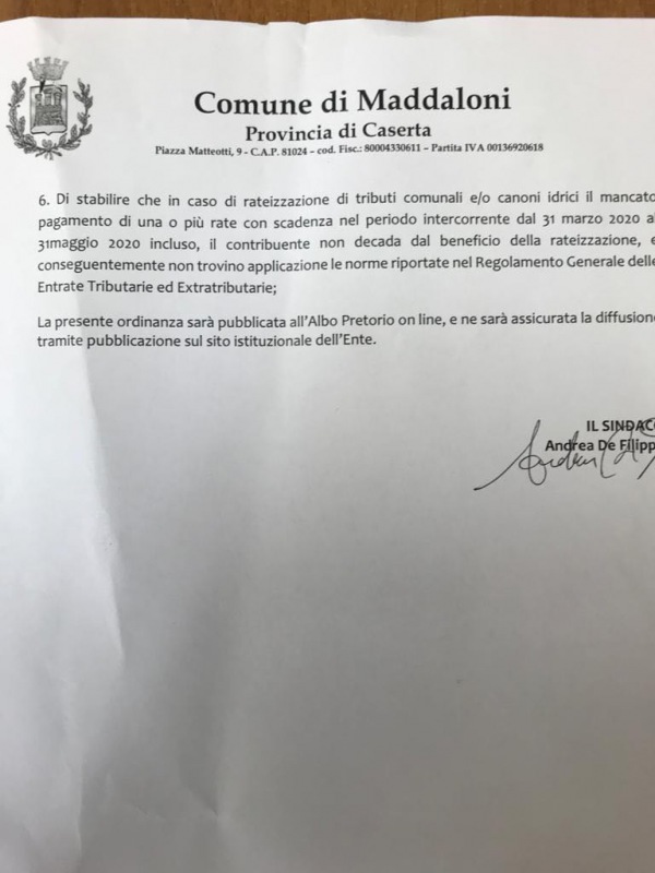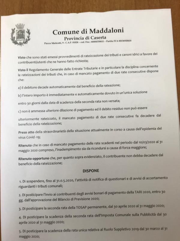 Questo quanto disposto dal Comune di Maddaloni