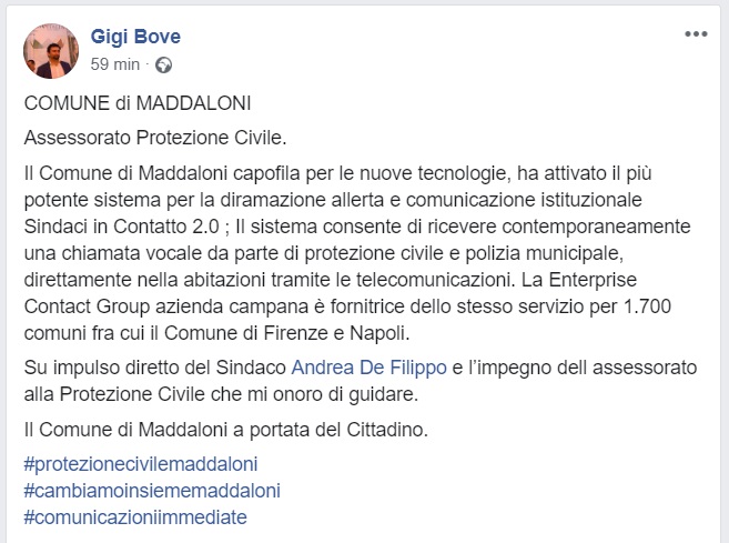 Questo il messaggio del Vicesindaco di Maddaloni Gigi Bove