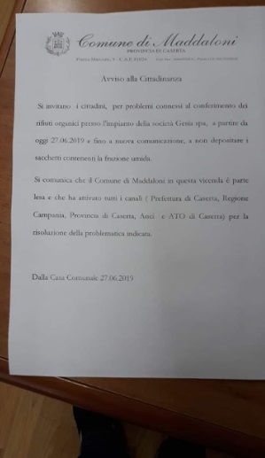Questo l'avviso del Comune di Maddaloni ai cittadini.
