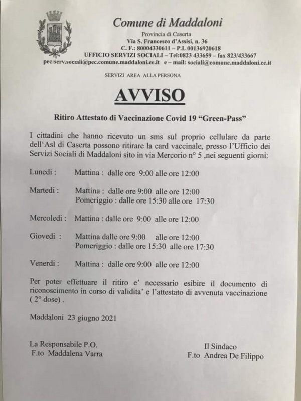 Questa la nota del Comune di Maddaloni: