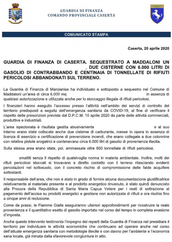 Pubblichiamo nota stampa del Comando Provinciale Guardia di Finanza Caserta