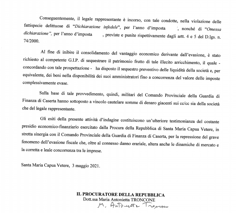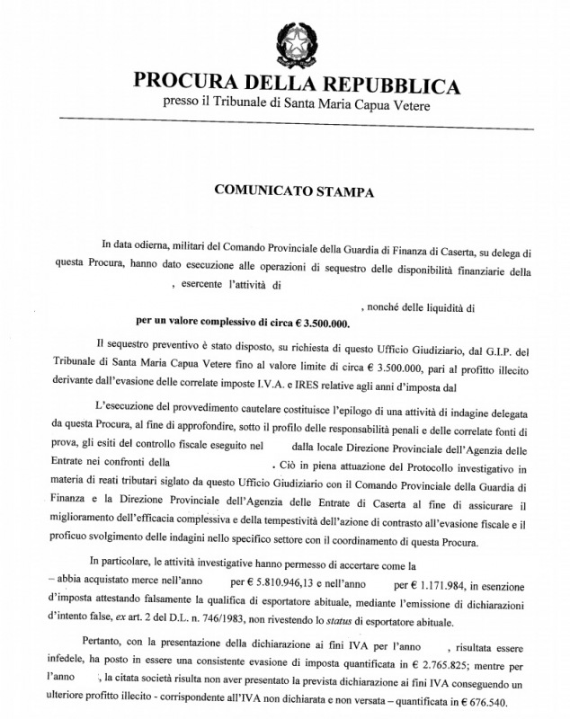 Maddaloni. "Sequestro delle disponibilità finanziarie di una società", la nota della Procura