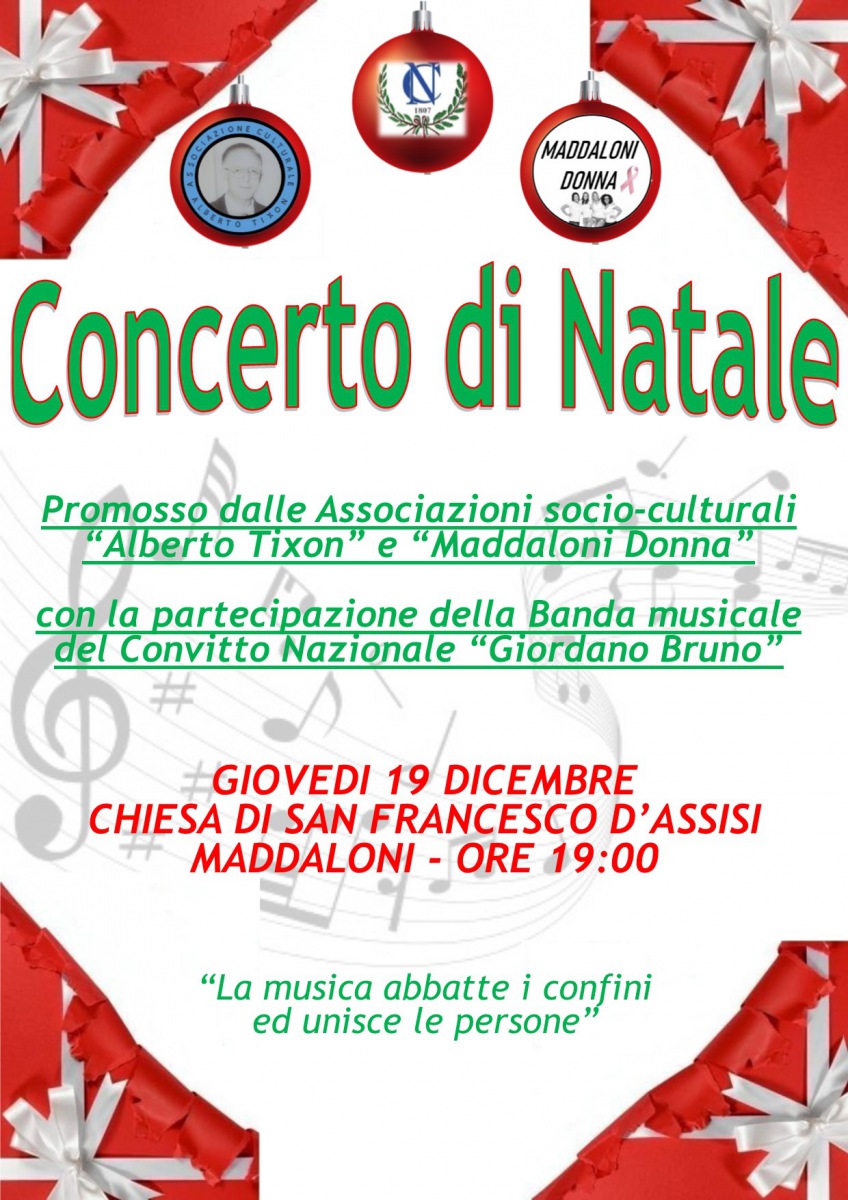 Pubblichiamo nota stampa congiunta delle Ass. Alberto Tixon e Maddaloni Donna: "Accogliere il Natale nel segno della musica e dei giovani. E’ da queste premesse che nasce il ‘Concerto di Natale’, promosso ed organizzato dalle associazioni socio culturali ‘Alberto Tixon’ e ‘Maddaloni Donna’, in collaborazione con il Convitto Nazionale ‘G. Bruno’. L’evento - si legge nella nota - si basa sull’esibizione della ‘Banda Musicale del Convitto Nazionale ‘G. Bruno’, formata da alunni dell’istituto scolastico, diretta dai professori Luigi Pascarella e Domenica Papa, che si svolgerà giovedì 19 dicembre alle ore 19 presso la Chiesa di San Francesco d’Assisi. I giovani musicisti presenteranno al pubblico brani della tradizione natalizia, napoletana, con accenni di musica leggera. A termine del concerto è prevista una sorpresa per i ragazzi. “Per noi era giusto – ha dichiarato il presidente dell’associazione ‘Alberto Tixon’ Giovanni Bocciero – nella progettazione di un evento natalizio puntare su quello che di positivo poteva essere individuato in città ed a nostro parere non c’è nulla di più valido della musica e dei giovani. Anche attraverso l’arte della musica - si legge nella nota - passa la formazione delle future generazioni. Siamo davvero entusiasti che questa nostra idea sia stata accolta con entusiasmo dal Rettore Rocco Gervasio che ringrazio personalmente per averci aperto le porte e sposato il nostro progetto. Voglio ringraziare anche i professori Pascarella e Papa per la loro disponibilità. Invito naturalmente tutti i cittadini ad assistere al nostro evento ed a godersi un’ora di buona musica e di allegria”. “Voglio ringraziare – ha dichiarato il presidente di ‘Maddaloni Donna’ Dora Olivieri – il Rettore Rocco Gervasio ed i professori Pascarella e Papa per la gentilezza e la disponibilità che hanno