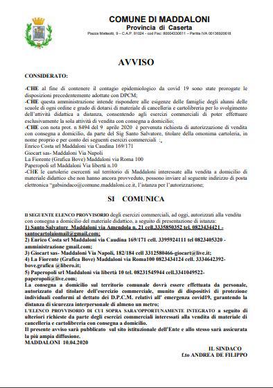 Di seguito l'avviso del Comune di Maddaloni, giunto in redazione.