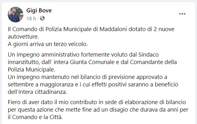 Questo quanto pubblicato dal Vicesindaco di Maddaloni