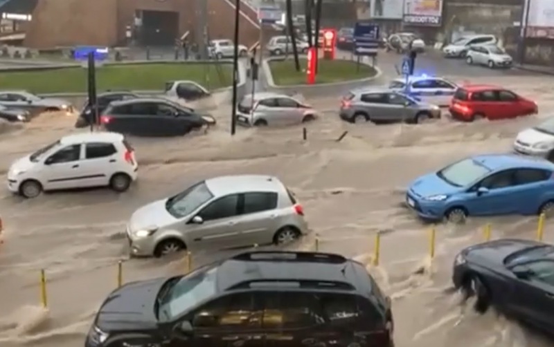 Anche a Napoli si è abbattuta la bomba d'acqua intorno l'ora di pranzo. Le conseguenze sono state strade allagate e traffico in tilt.
