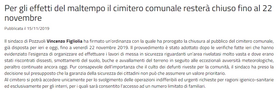 Questo quanto apprendiamo dal sito del Comune di Pozzuoli