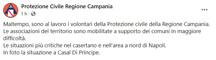 Questo quanto apprendiamo dalla pagina facebook della Prot. Civile Regione Campania: