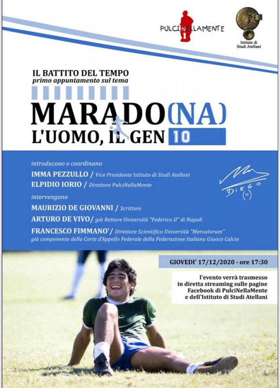Pubblichiamo questa nota stampa: "Il Battito del Tempo primo appuntamento sul tema MARADO(NA) L'UOMO, IL GEN1O Giovedì 17 dicembre ’20 – ore 17.30 in diretta streaming sulle pagine Facebook di PulciNellaMente e dell'Istituto di Studi Atellani