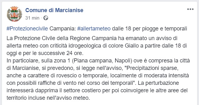 Questo quanto comunicato dal Comune di Marcianise sul proprio profilo FB