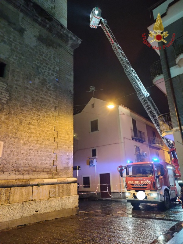 "Questa sera verso le ore 19:30 una squadra dei Vigili del Fuoco di Caserta e precisamente del distaccamento di Marcianise è intervenuta in via Grillo nel comune di Marcianise-si legge nella nota- dopo essere stati allarmati da alcuni passanti per la caduta di alcune parti di intonaco dal campanile della chiesa dell'Annunziata. -spiega la nota-Una volta giunti sul posto, i Vigili del fuoco hanno potuto accertare che oltre all'intonaco anche il batacchio di una -si legge nella nota-delle campane del campanile si era staccato cadendo nella piazza sottostante creando paura tra i passanti. -spiega la nota-Subito i Vigili del Fuoco si sono messi all'opera rimuovendo le parti di intonaco pericolanti e mettendo in sicurezza la zona."