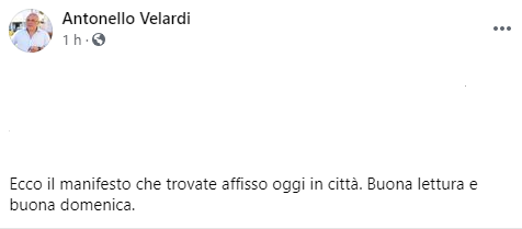 Questo parte del post pubblicato dal Sindaco di Marcianise Antonello Velardi sulla sua pagina Facebook: "(...) Ecco il manifesto che trovate affisso oggi in città. Buona lettura e buona domenica".