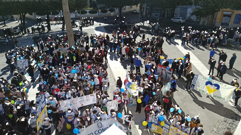 Pubblichiamo COMUNICATO STAMPA Comune di Marcianise: "Migliaia di studenti hanno colorato questa mattina con le bandiere della Pace Piazza Umberto I. Un vero successo la manifestazione ‘Postino Unicef’ organizzata dall’Amministrazione comunale guidata dal sindaco Antonello Velardi insieme al Comitato Unicef Campania e alle scuole presenti sul territorio. Ad aprire l’iniziativa l’intervento della presidente del consiglio comunale Angela Letizia che, dopo avere ringraziato tutti per l’impegno profuso negli ultimi giorni per la riuscita dell’evento, ha rimarcato l’importanza di aprire momenti di riflessione sui gravi avvenimenti di queste settimane e lo storico rapporto di collaborazione instaurato con l’Unicef sin dall’insediamento della prima amministrazione Velardi con la sottoscrizione di una convenzione che sarà a breve rinnovata. La presidente provinciale Unicef, Cecilia Amodio, ha chiesto all’Amministrazione comunale di lavorare per la costruzione di una città a misura di bambino e la convocazione di un consiglio comunale su questo tema che si terrà a breve. Sono seguite le esibizioni dei rappresentanti delle scuole di primo e secondo grado del territorio: l’istituto Comprensivo DD2 Bosco, l’ISISS Padre Salvatore Lener, l’Istituto Comprensivo Aniello Calcara, l’ISIS Ferraris-Buccini, l’Istituto Comprensivo DD1 Cavour, l’Istituto Comprensivo Aldo Moro , l’ISISS G.B. Novelli e il Liceo Federico Quercia. Gli studenti hanno presentato i loro lavori (temi, pensieri, frasi, disegni, poesie, musiche), frutto di una riflessione compiuta in questi giorni su quanto sta accadendo nel mondo, che il ‘Postino Unicef’ consegnerà nelle mani del Generale Giuseppe Nicola Tota, Comandante delle Forze Operative Sud (COMFOPSUD), persona che la pace la costruisce, la sostiene e la tutela attraverso le missioni umanitarie del Governo. Il sindaco Antonello Velardi, lontano per impegni istituzionali, è intervenuto da remoto, salutando con soddisfazione l’iniziativa e ribadendo l’impegno dell’Amministrazione comunale a favore dei minori. Al termine della manifestazione sono state consegnate delle targhe come forma di ringraziamento a tutte le scuole per aver contribuito in maniera fondamentale alla riuscita dell’iniziativa."