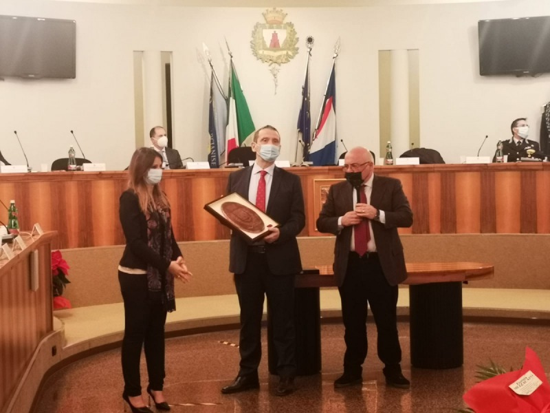 Si è svolta oggi pomeriggio, nell'aula consiliare del Comune di Marcianise, la cerimonia di consegna degli attestati in segno di ringraziamento a tutte le istituzioni che hanno operato "con particolare dedizione", e stanno ancora operando, per fronteggiare l'emergenza coronavirus. Alla cerimonia - promossa dal Presidente del Consiglio, dott.ssa Angela Letizia - ha partecipato- si legge nella nota- il prefetto di Caserta, dott. Giuseppe Castaldo. Sono stati premiati i vertici della Asl, con il direttore amministrativo dott. Amedeo Blasotti, il direttore sanitario del distretto di Marcianise, dott. Giovanni Delle Curti, e il direttore sanitario del locale ospedale, dott.ssa Laura Leoncini. Il riconoscimento è stato consegnato anche al dirigente del locale commissariato di polizia dott. Pasquale Lamitella (presente anche il questore di Caserta, dott. Antonio Borrelli), il comandante della locale compagnia dei carabinieri, capitano Lucio Pellegrino (presente anche il comandante del Gruppo di Aversa dell'Arma, tenente colonnello Donato D'Amato), e della compagnia della Guardia di Finanza (capitano Benedetta Antonaci). Una targa è stata consegnata anche al responsabile del distaccamento di Marcianise dei Vigili del Fuoco, caporeparto Furio Valentino (presente anche, per il comando provinciale, il caporeparto Michele Mezzacapo), ai rappresentanti del Nucleo comunale della Protezione Civile, Claudio Bucciero, e della sezione locale della Croce Rossa Italiana Vincenzo Moretta, al comandante della Polizia Municipale, capitano Giuseppe Fedele, e alla responsabile dei servizi sociali comunali e dell'Ambito dott.ssa Franca Nubifero. I premi- si legge nella nota- sono stati consegnati dal presidente del consiglio comunale dott.ssa Angela Letizia, dal vicesindaco arch. Tommaso Rossano, dall'assessore ing. Giuseppe Riccio, dall’assessore dott.ssa Sara Mezzacapo, dalla consigliera comunale Marisella Braccio. Il sindaco dott. Antonello Velardi e il presidente del consiglio comunale hanno ringraziato a nome della città, dell'Amministrazione e del Consiglio tutti gli intervenuti, esprimendo la sentita gratitudine per il lavoro che tuttora viene svolto dalle diverse istituzioni impegnate sul territorio per fronteggiare la pandemia da covid19. Il direttore amministrativo dell'Asl, nel sottolineare il difficile lavoro svolto dal personale sanitario, ha invitato tutti a non abbassare la guardia nel fronteggiare i rischi della pandemia e ha ribadito l'alta adesione alla campagna vaccinale da parte dei cittadini di Marcianise. Chiudendo la cerimonia (cui hanno dato un particolare contributo nell'accoglienza le allieve del locale istituto Lener), il prefetto di Caserta dott. Giuseppe Castaldo ha avuto parole di vivo apprezzamento per l'iniziativa, ha confermato la viva considerazione per tutti coloro che sono stati premiati inviando un particolare saluto a tutti i cittadini. Al prefetto - a Marcianise in visita ufficiale tra le prime dopo il suo insediamento - è stato consegnata- si legge nella nota- un'artistica opera raffigurante lo stemma comunale, prodotta dagli allievi del locale liceo "Buccini". Il dott. Castaldo ha confermato che sarà presto di nuovo a Marcianise, sottolineando la vicinanza e la costante attenzione del massimo rappresentante del Governo all'intera comunità locale."