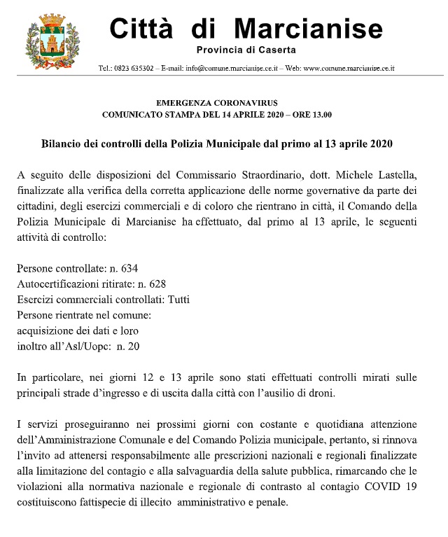 Questa la nota stampa del Comune di Marcianise