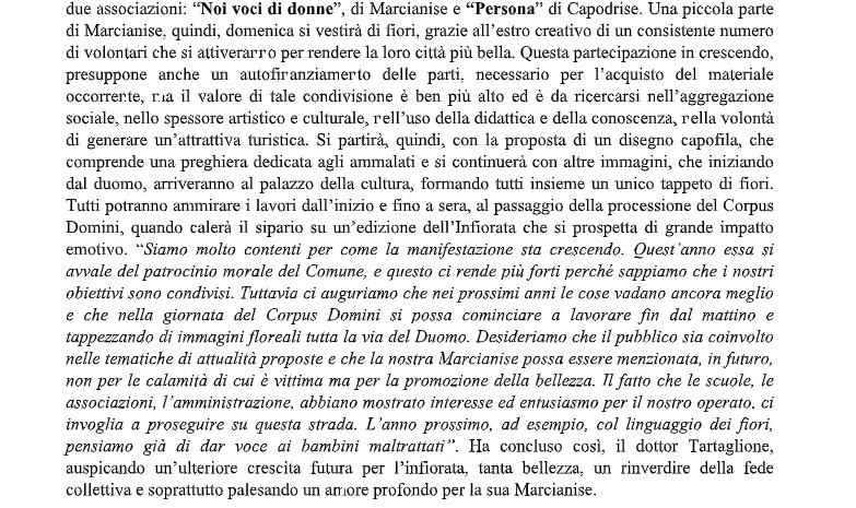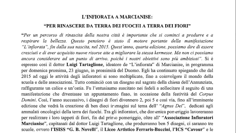 MARCIANISE. Domenica 'L'infiorata'. "Per rinascere da terra dei fuochi a terra dei fiori"