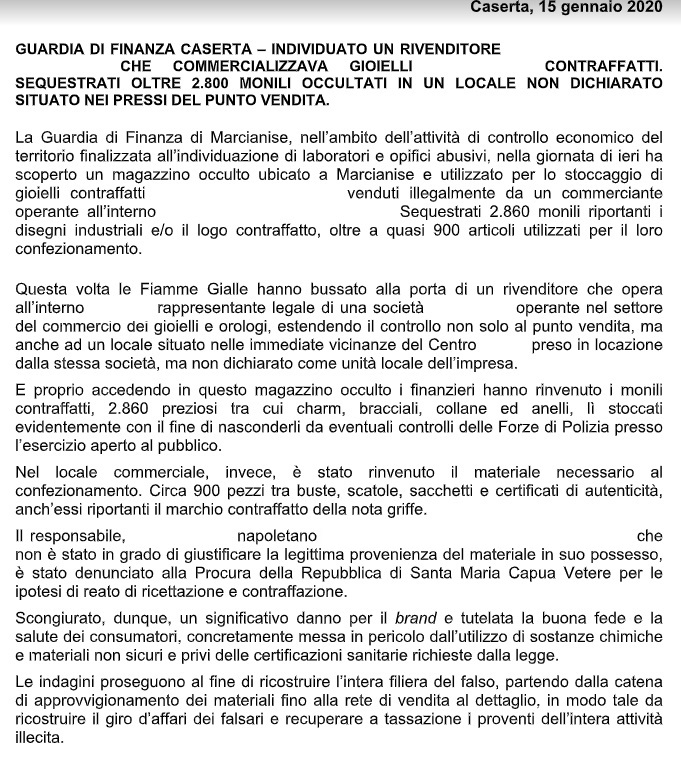 Pubblichiamo nota stampa del Comando Provinciale Guardia di Finanza Caserta