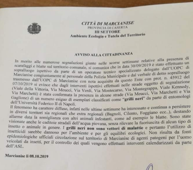 Questo il documento del Comune di Marcianise