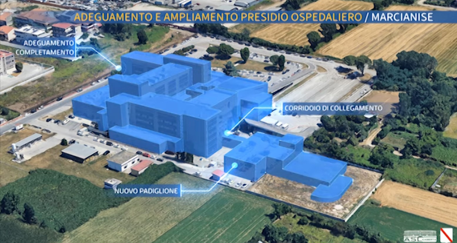 Care amiche e cari amici, torno sull'ospedale di Marcianise e vi mostro come sarà il nostro nosocomio al termine dei lavori (che non avranno una tempistica pachidermica). L'altro giorno abbiamo posato - si legge nel post - la prima pietra per l'edificazione del nuovo padiglione. Inoltre, proseguiranno gli interventi di adeguamento della struttura attuale. E' già in funzione il nuovo parcheggio che è andato ad aggiungersi al precedente e sono state inserite altre specializzazioni mediche in attesa di nuove che verranno collocate nel costruendo padiglione. Nei prossimi mesi il cantiere sarà visibile. Non smetterò mai di ringraziare - prosegue il post - Regione Campania ed ASL di Caserta che, come la sottoscritta, hanno voluto fortemente queste opere".