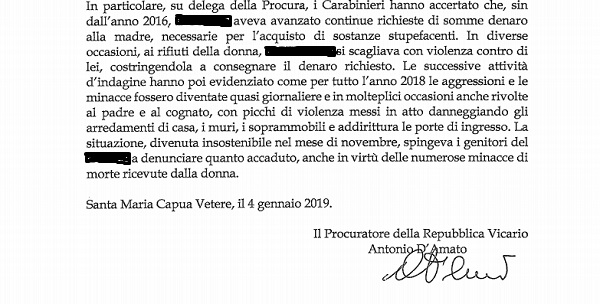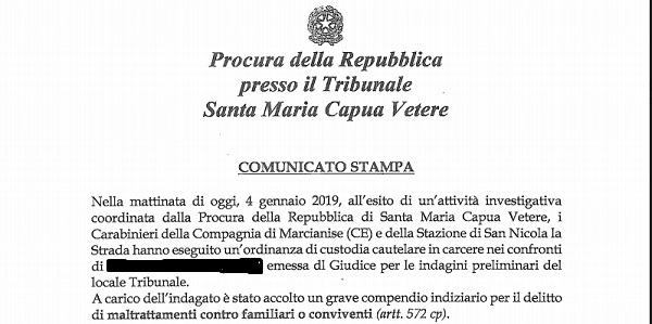 Questo parte del comunicato invatoci dalla Procura della Repubblica presso il Tribunale di Santa Maria Capua Vetere.