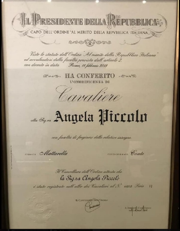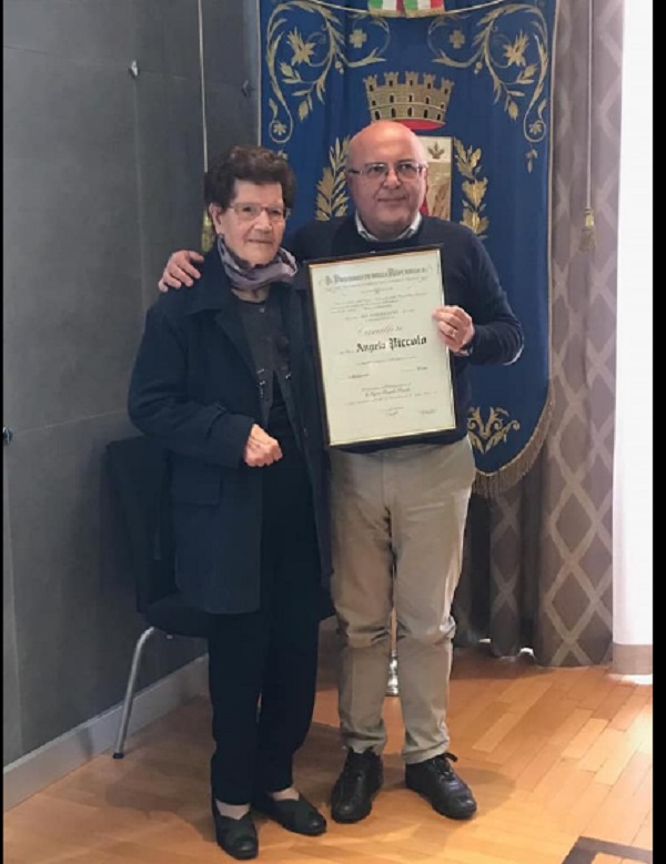 A seguire il riconoscimento del Presidente Mattarella alla signora Angela Piccolo.