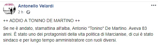 Questo parte del post pubblicato sulla pagina fb ufficiale del Sindaco di Marcianise Antonello Velardi.