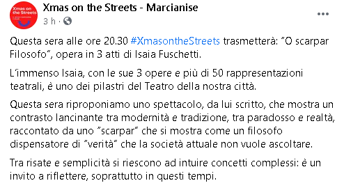 Lo apprendiamo dalla pagina Facebook Xmas on the Streets - Marcianise.