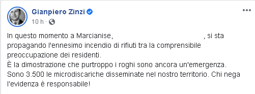 Lo apprendiamo dalla pagina Facebook del consigliere regionale Gianpiero Zinzi.