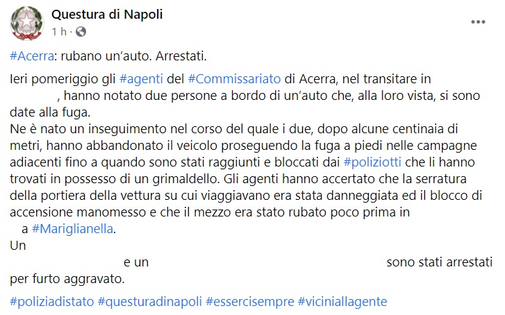 Questo parte di quanto pubblicato sulla pagina facebook della Questura di Napoli: