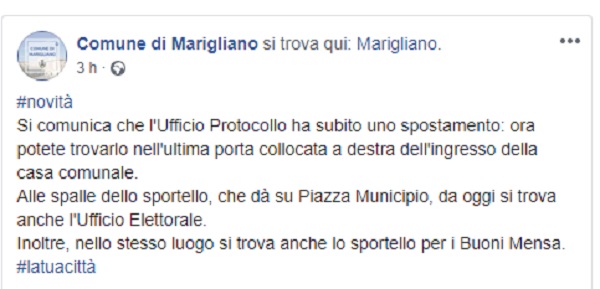Questo il post pubblicato sulla pagina fb ufficiale del Comune di Marigliano.
