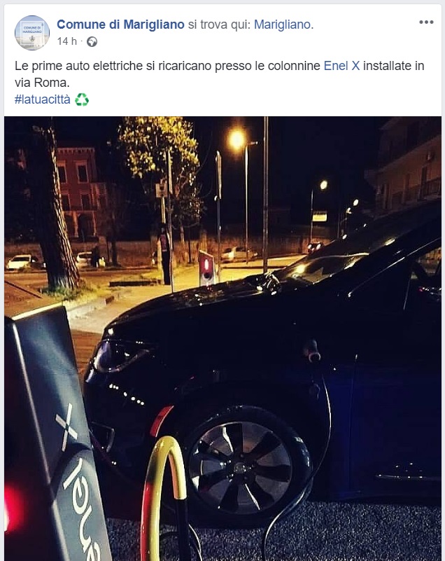 Il Comune di Marigliano si è dotato di colonnina per ricaricare le auto elettriche. Questo quanto apprendiamo dalla pagina Facebook del comune.