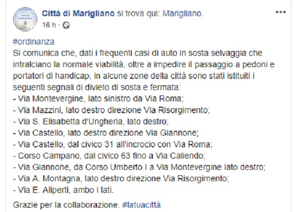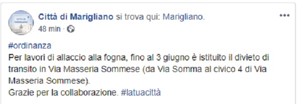 Questi i due post pubblicati sulla pagina fb ufficiale della 'Città di Marigliano'.