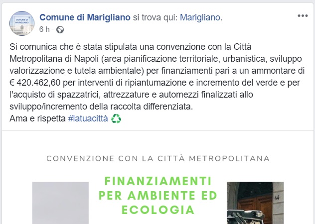 Interventi di ripiantumazione e incremento del verde, e l'acquisto di spazzatrici, attrezzature e automezzi per lo sviluppo della raccolta differenziata. Questo alla base della convenzione.