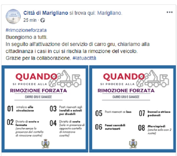Questo il post pubblicato sulla pagina fb ufficiale della 'Città di Marigliano'.