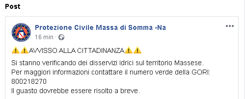 Lo apprendiamo dalla pagina Facebook Protezione Civile Massa di Somma-Na: