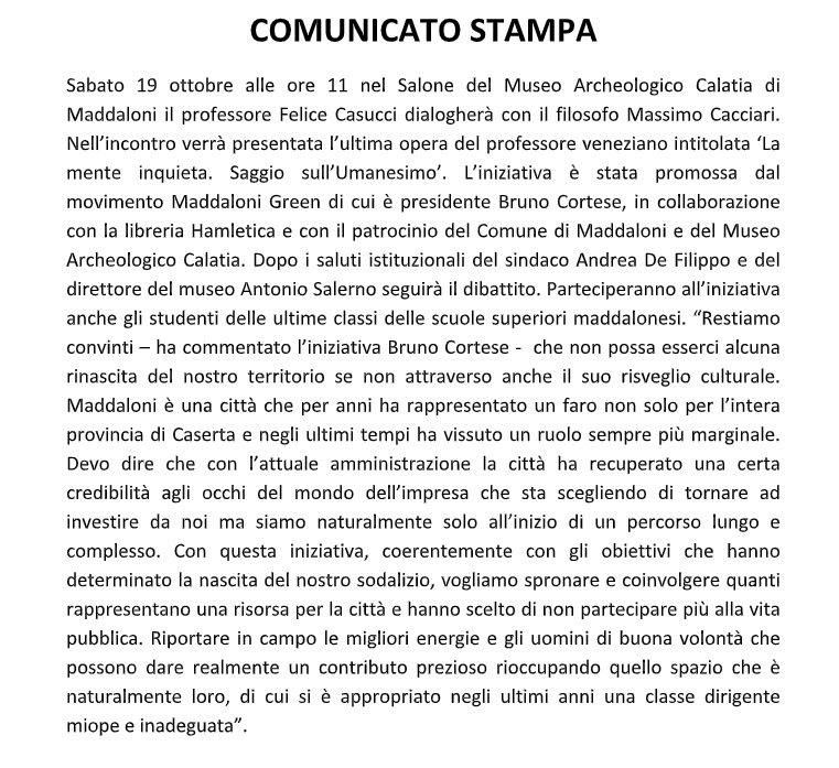 Questo il comunicato stampa del Movimento Maddaloni Green: