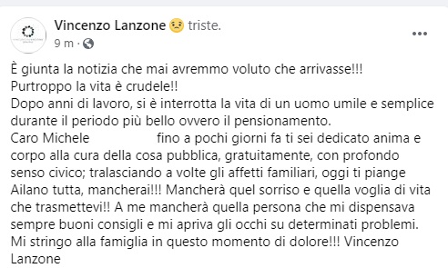 Dalla pagina Facebook del Sindaco di Ailano Vincenzo Lanzone