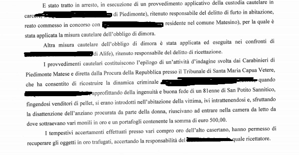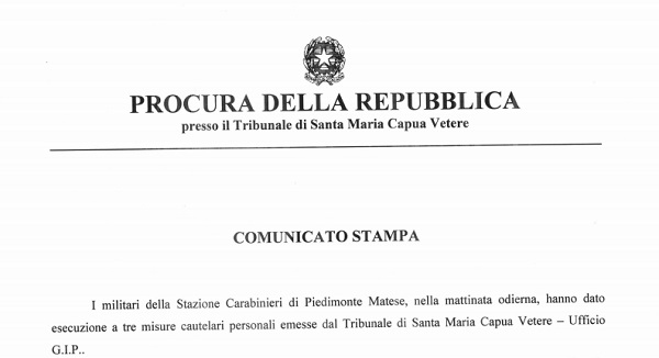 Questo parte del comunicato inviatoci dalla Procura della Repubblica presso il Tribunale di Santa Maria Capua Vetere.