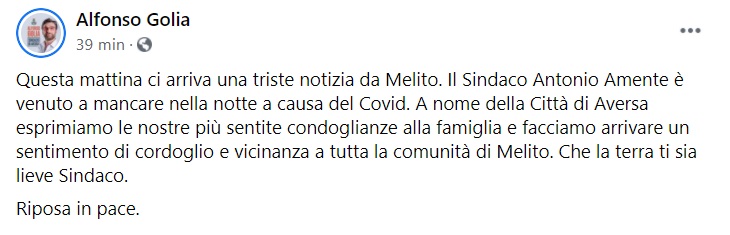 Questo quanto pubblicato sulla pagina facebook del Sindaco Golia.