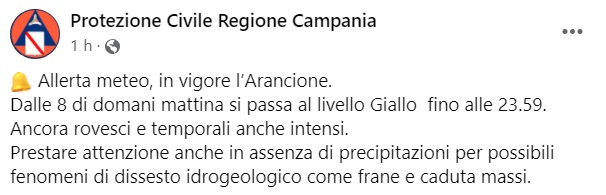 Questo parte di quanto apprendiamo dalla pagina facebook della Prot. Civile Regione Campania: