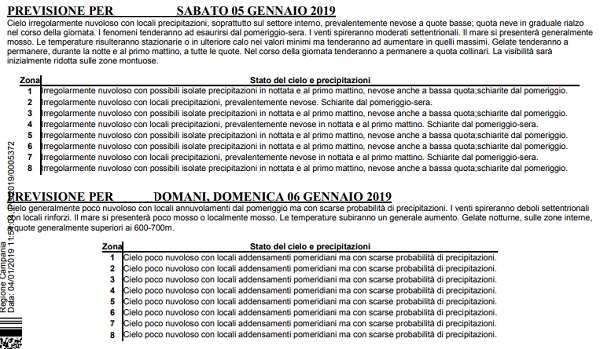 PUBBLICHIAMO IL BOLLETTINO METEO DELLA PROTEZIONE CIVILE DELLA REGIONE CAMPANIA: