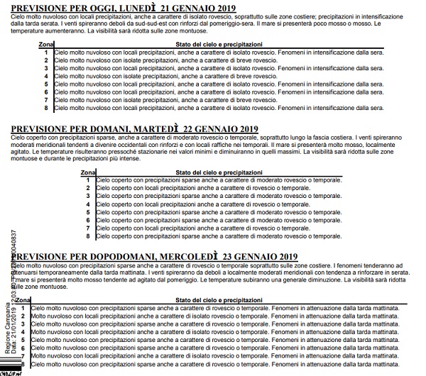PUBBLICHIAMO IL BOLLETTINO METEO DELLA PROTEZIONE CIVILE DELLA REGIONE CAMPANIA: