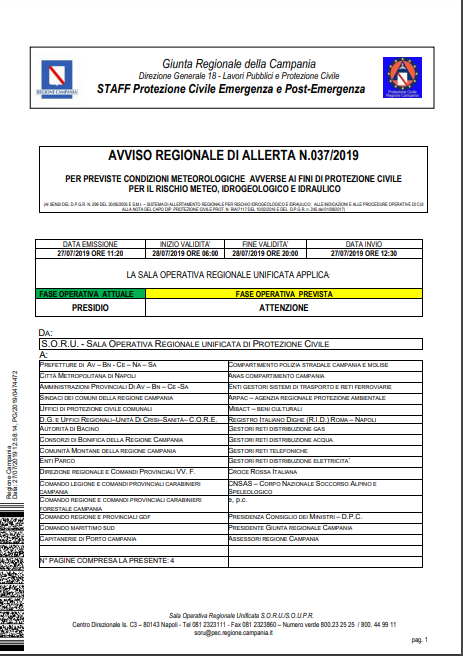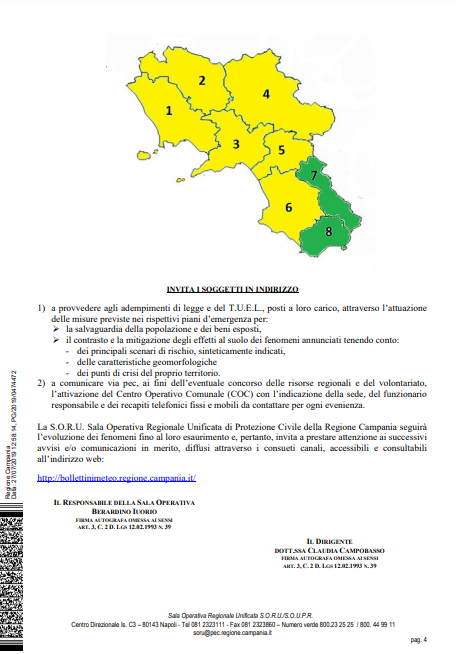 CLICCA QUI per leggere l'avviso sul sito Bollettini Meteo Regione Campania.
