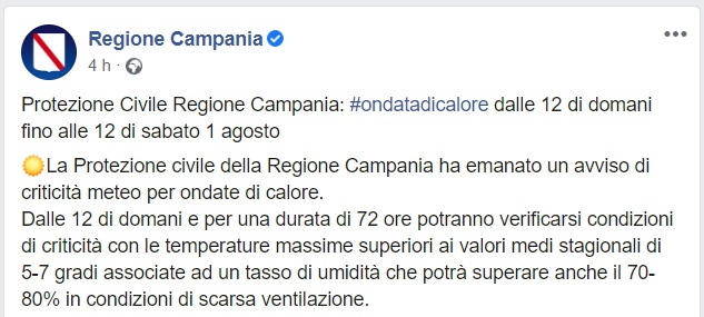Questo quanto comunicato da Regione Campania