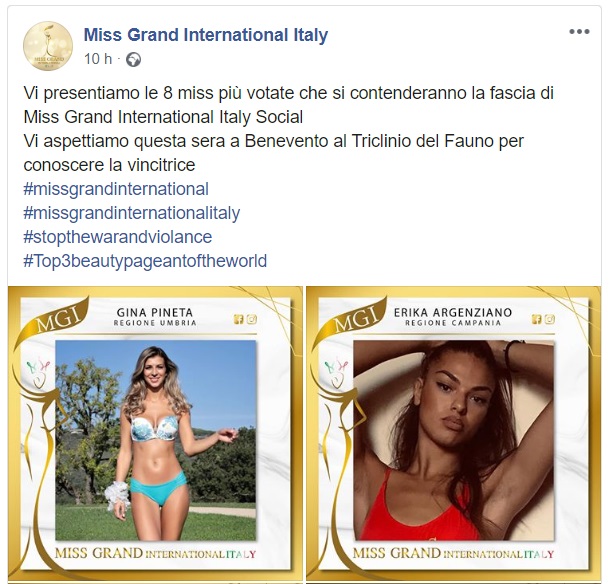 La recalese Erika Argenziano, tra le 40 finaliste di Miss Grand International, è stata votata tra le 8 ragazze più belle sui social. Complimenti