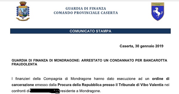Questo parte del comunicato inviatoci dal Comando Provinciale della Guardia di Finanza di Caserta.