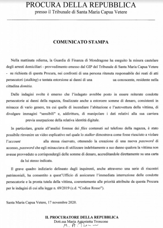Pubblichiamo nota stampa della Procura di SMCV