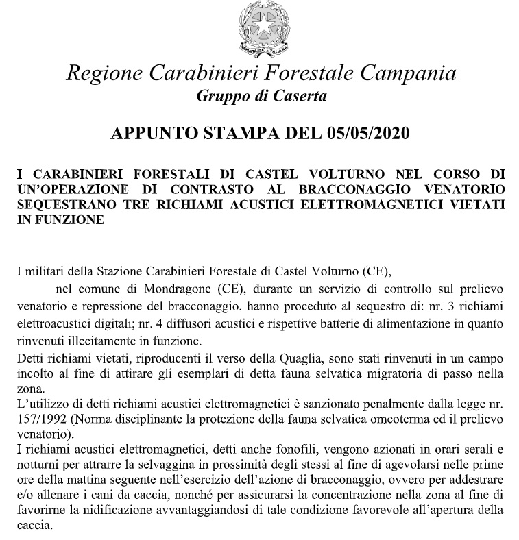 Pubblichiamo nota stampa del Comando Provinciale Carabinieri di Caserta