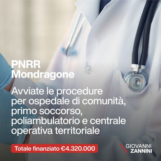 "FONDI PNRR PER L’OSPEDALE DI COMUNITÀ A MONDRAGONE, AVVIATE LE PROCEDURE PER LA REALIZZAZIONE DELLA STRUTTURA CHE SARÀ DOTATA DI 20 POSTI LETTI, PRIMO SOCCORSO H24, CASA DI CURA, POLIAMBULATORIO E CENTRALE OPERATIVA TERRITORIALE."