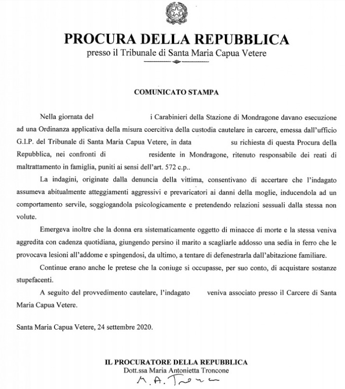 Questo parte del comunicato della Procura di SMCV: